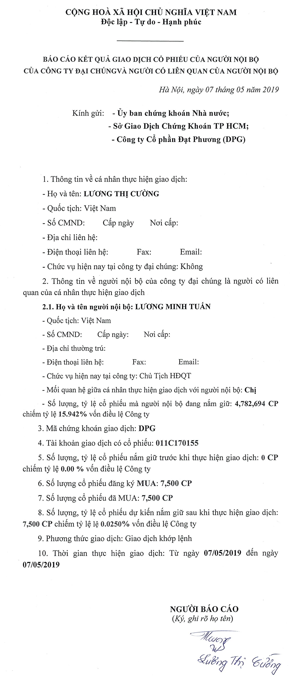 Báo cáo kết quả giao dịch cổ phiếu của người nội bộ và người có liên quan của người nội bộ – Lương Thị Thanh